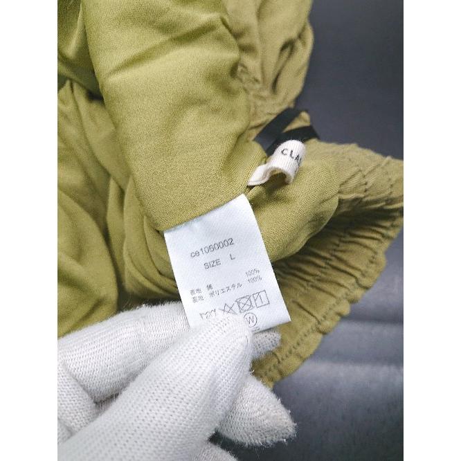 ◇ classicalelf ワンタック ウエストゴム 裏地 腰紐調節 ストレッチ シンプル パンツ サイズL グリーン レディース E
