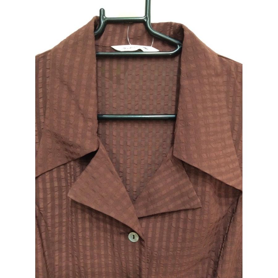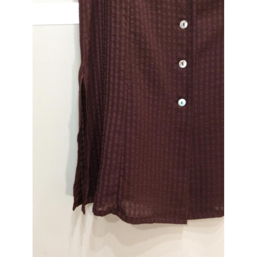 えんじ地格子柄ノースリブラウス ポリエステル