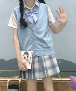 程よい空き具合の首元のVラインが、リボンやネクタイの邪魔をしません。
