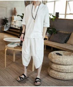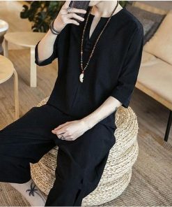 綿麻上下セット セットアップ リネン メンズ ワイドパンツ サルエルパンツ 上下 ルームウェア 半袖 薄手 Tシャツ パンツ 部屋着