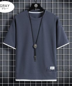 Tシャツ メンズ 半袖 重ね着風 フェイクレイヤード 無地