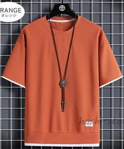 【特価】Tシャツ メンズ ス 半袖 ゆったり 重ね着風 フェイクレイヤード ワッフル 通気性 涼しい クルーネック Uネック シンプル 無地 お洒落 夏