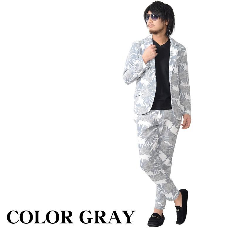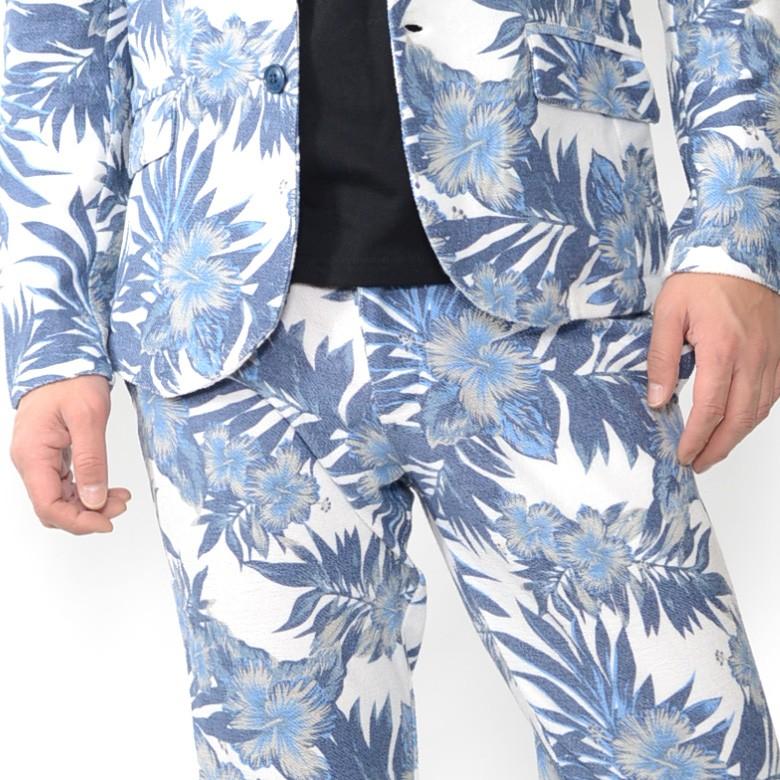 【閉店セール】スーツ メンズ パイル生地 ミニ裏毛 ボタニカル柄 フラワー セットアップ テーラードジャケット JKT ロングパンツ 上下セット