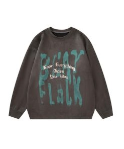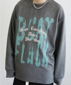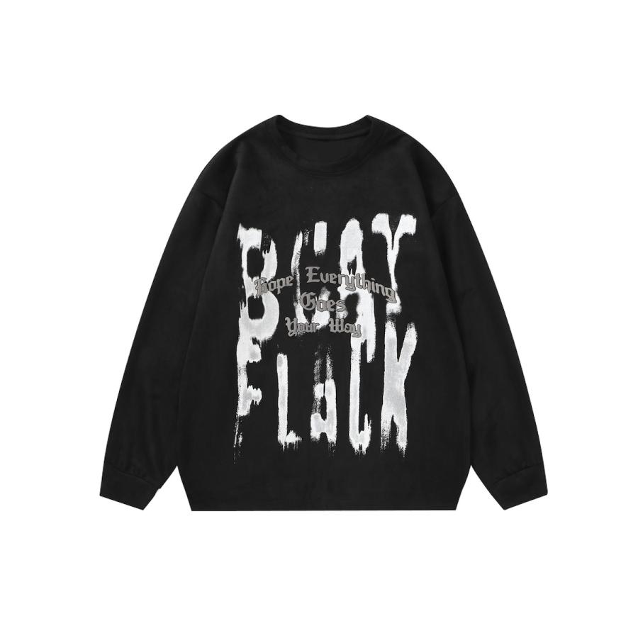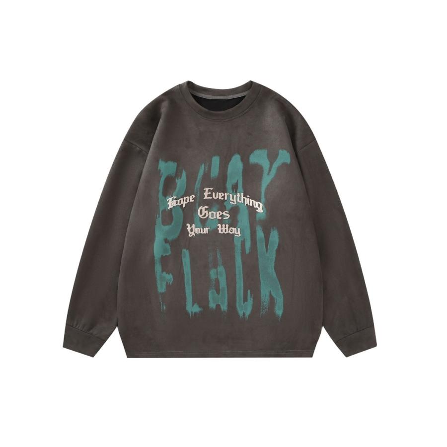 商品名:【HOOK】落書き英字プリントスエード調スウェット