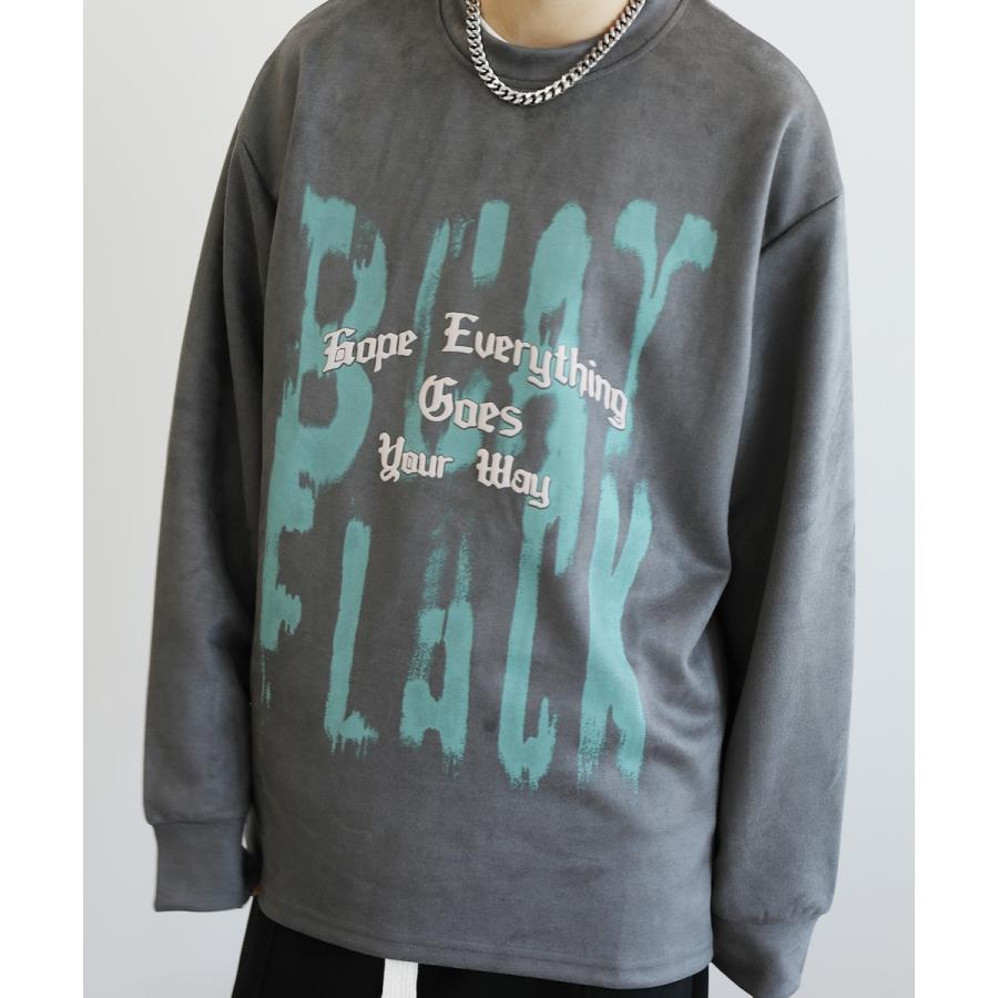 【HOOK】落書き英字プリントスエード調スウェット