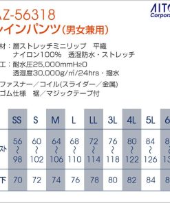 AZ-56318 AITOZ レインパンツ DiAPLE ディアプレックス 高度な防水性・透湿性に、驚異的な結露防止機能を備えたレインウェア 専用収納バッグ付き