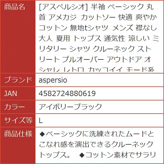 アスペルシオ 半袖 ベーシック 丸首 アメカジ カットソー 快適 爽やか コットン 無地tシャツ メンズ(アイボリーブラック, L)