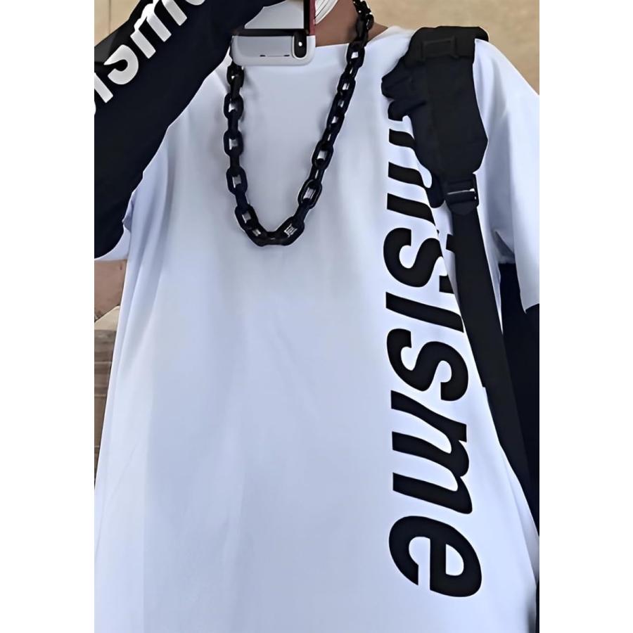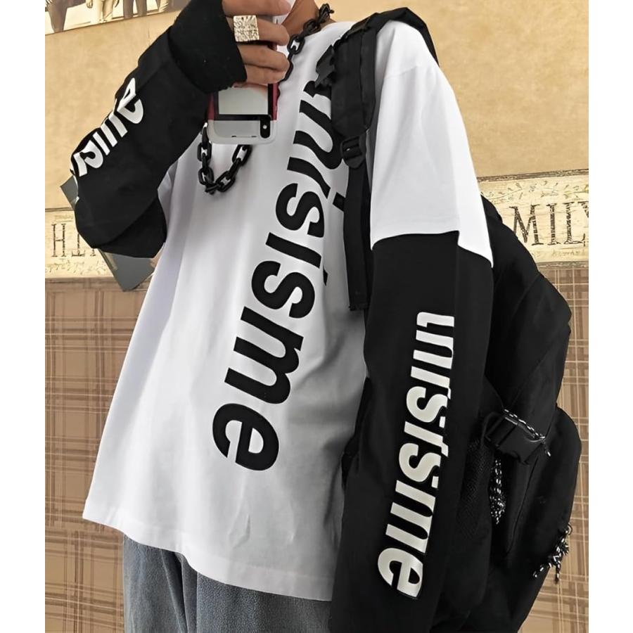 アスペルシオ 重ね着風 ロングスリーブ 袖ロゴ 英文字 プリント オシャレ カッコイイ トップス メンズ(ミルクホワイト, 3XL)