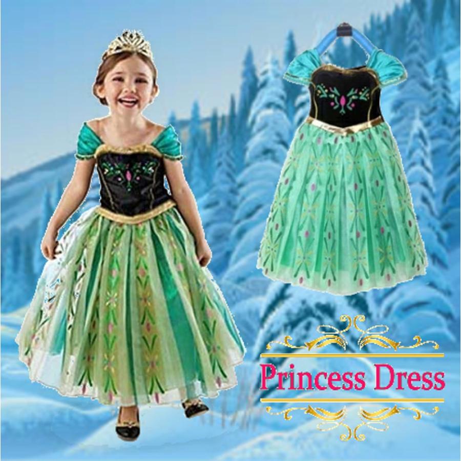 アナと雪の女王 アナ ドレス コスチューム 豪華8点セット ( プリンセスドレス , リボン付グローブ, ハートのティアラ, 魔法のステッキ, ネックレス, イヤリング, 指輪, ブレスレット)
