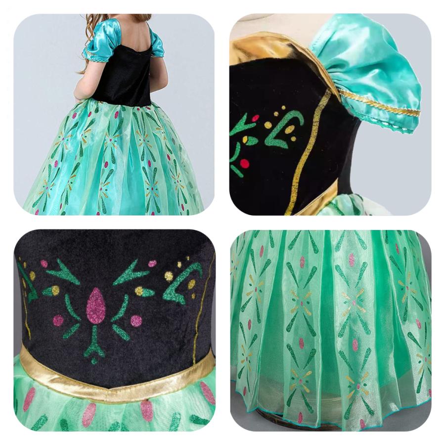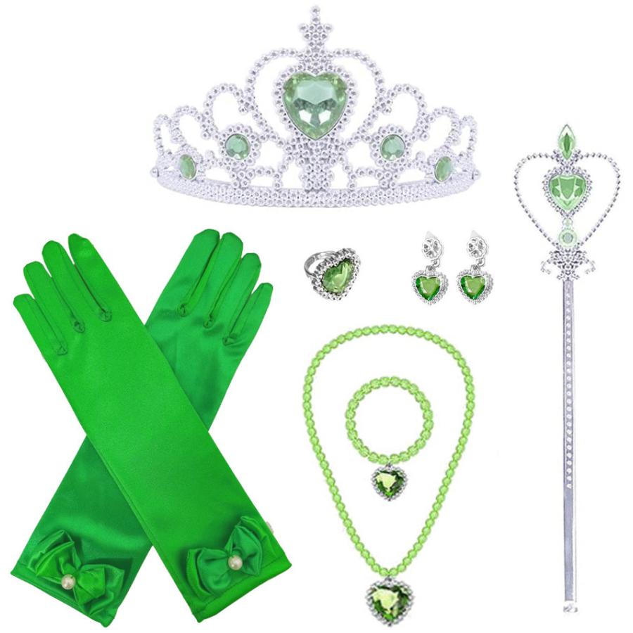 アナ ドレス 子供 コスプレ 衣装 豪華8点 セット ( 手袋 ティアラ ステッキ ネックレス イヤリング ブレスレット 指輪 ) 100 110 120 130 140