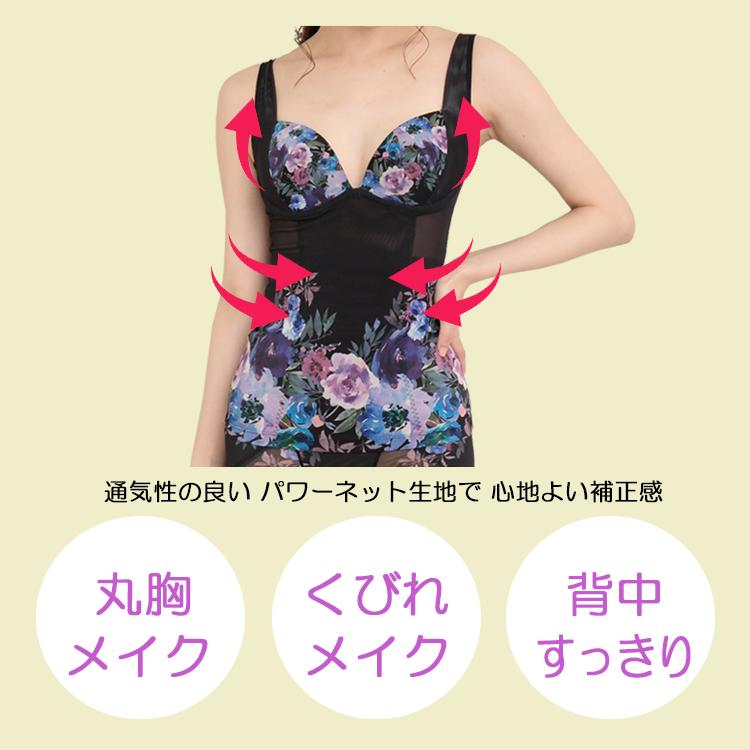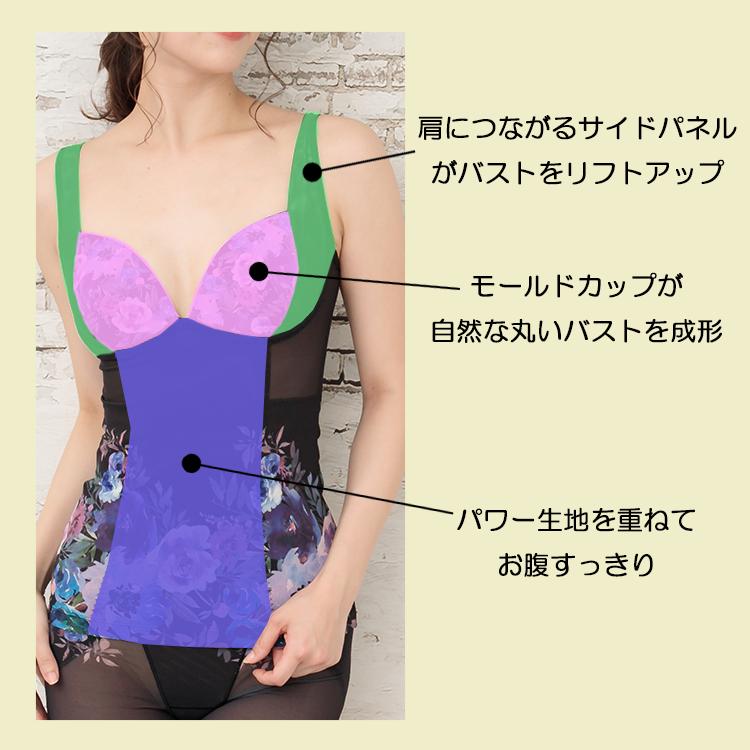 インナー 補正 補整 お腹 おすすめ ほっそり 花柄 ボディーシェーパー 黒 パープル メッシュ 矯正 レディース 下着 くびれ