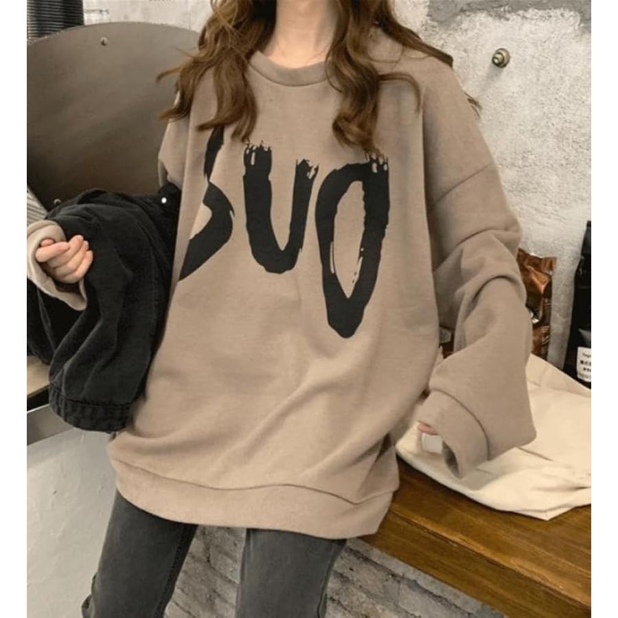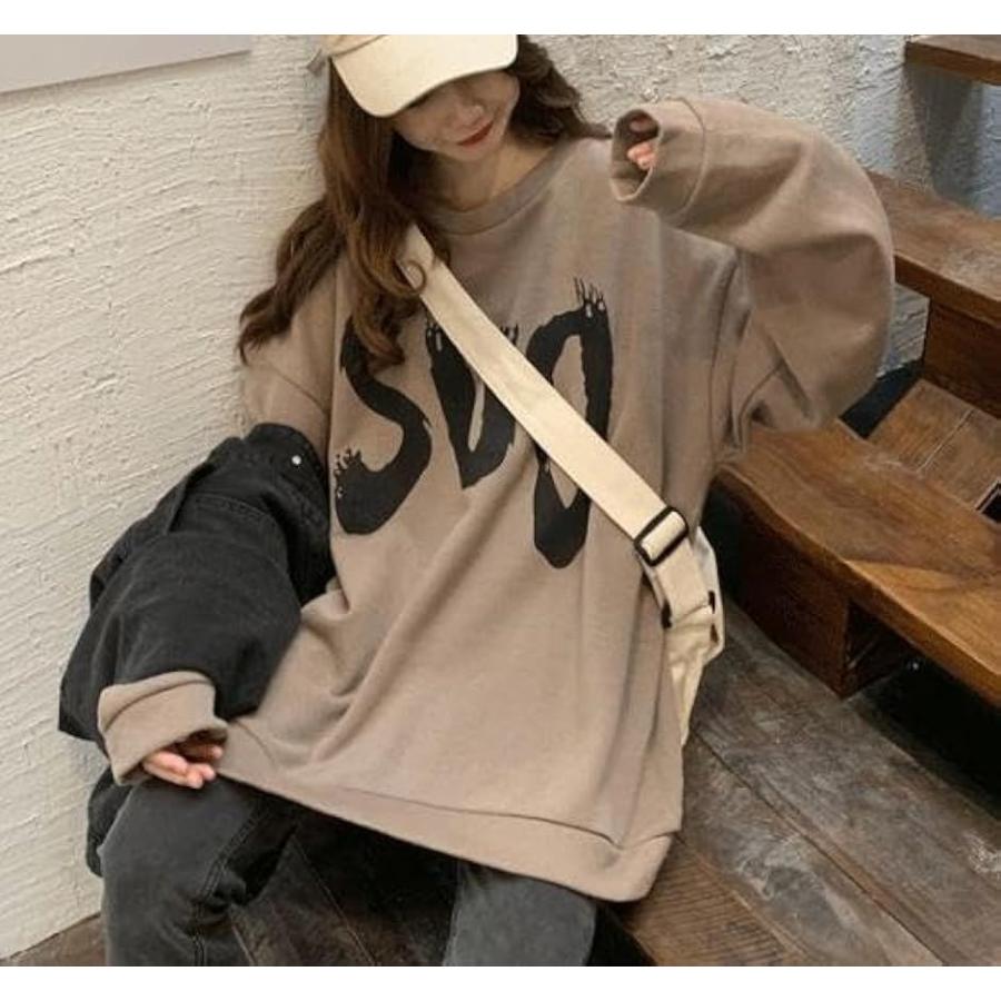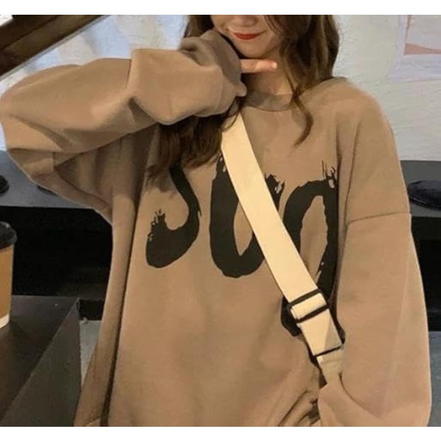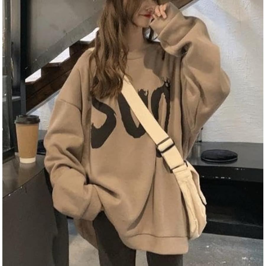 ウスデ カワイイ ゆったりサイズ プルオーバー 長袖 だる着 トレーナー レディース トップス チュニック(キャメルブラウン, L)