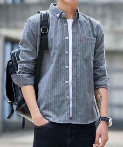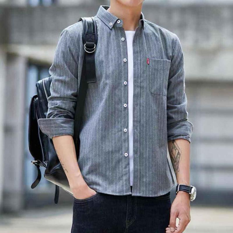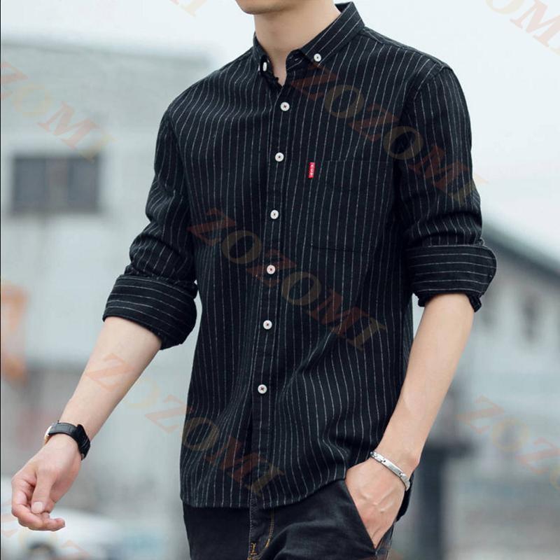 カジュアルシャツ メンズ ストライプ柄 ボタンダウンシャツ ス 長袖 シャツ 細身 ファッション 10代 20代 30代 秋物 秋冬