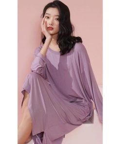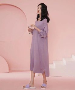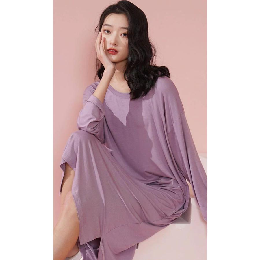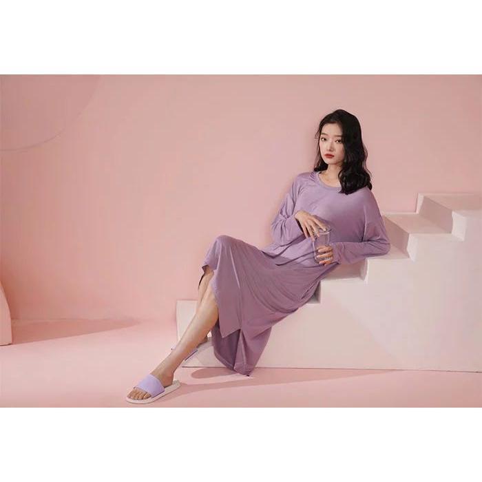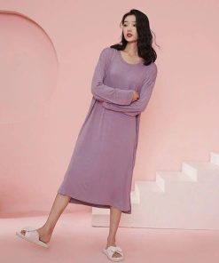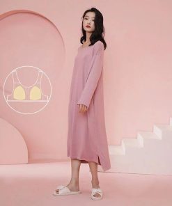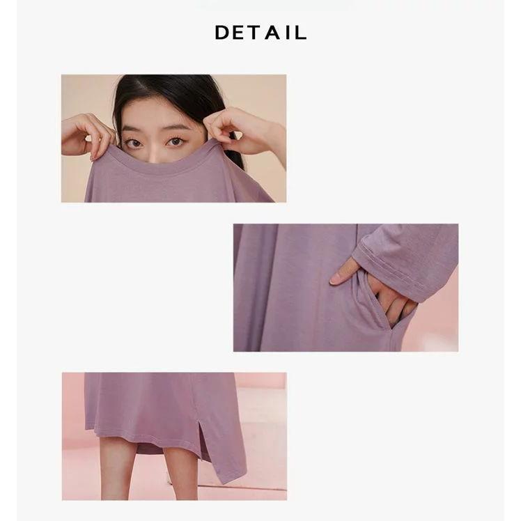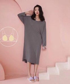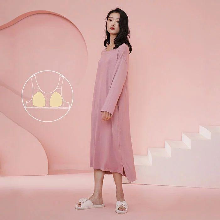 カップ付き ワンピース ロングワンピ 長袖 ルームウェア 日常ウェア ロングTシャツワンピース モダール パジャマ シンプル