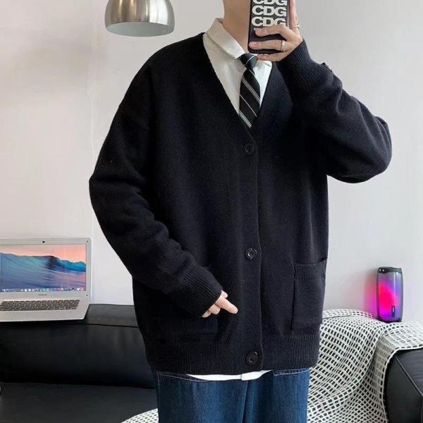 カーディガン メンズ ニットセーター オーバーサイズ vネック ニット アウター セーター 羽織 体型カバー 秋冬 前開き 軽アウター カジュアル
