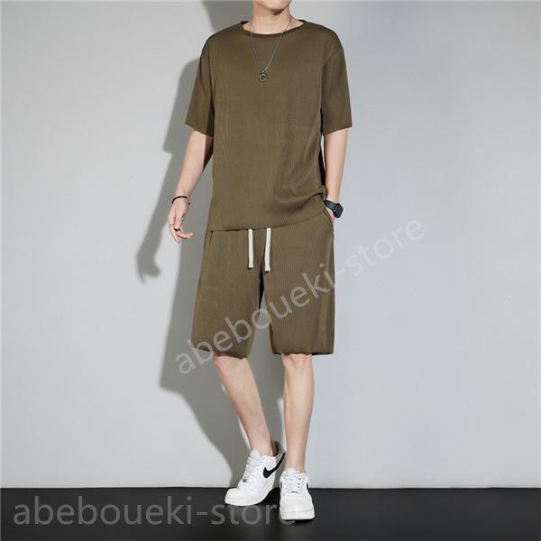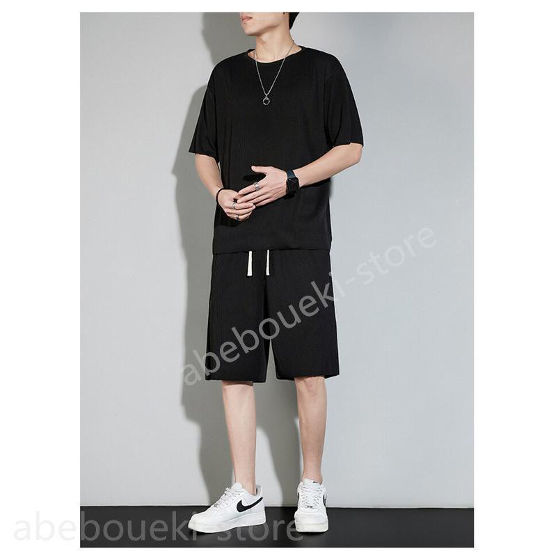 ジャージ メンズ 上下セット 2点セット セットアップ 半袖 ショートパンツ ハーフパンツ おしゃれ 夏物 吸汗速乾 薄手 無地 スポーツ 快適