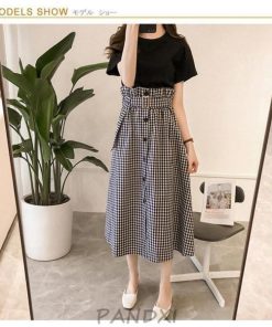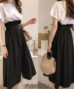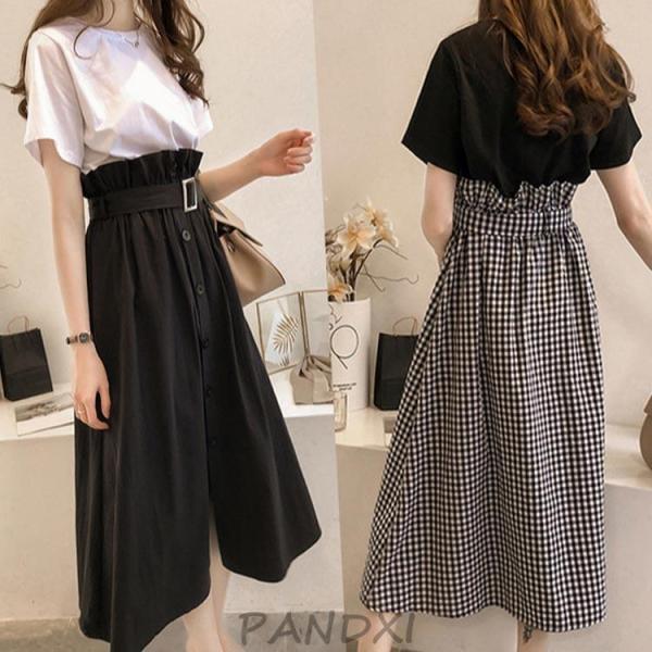 スカートスーツ 夏 Tシャツ+スカート オフィス フェミニン おしゃれ ブラックTシャツ 2点セット お出かけ カジュアル ス