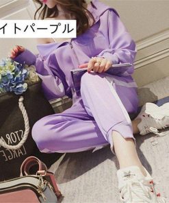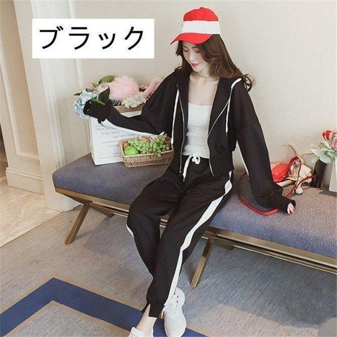 スポーツウエア 上下セット レディース ジャージ セットアップ 運動着 長袖 バイカラー トレーニングウエア フード付き 運動会