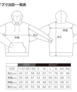 ※ キッズサイズには、フードひもがありませんのでご安心ください。子ども用衣料の安全に関する規格JIS L 4129に即しています。