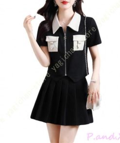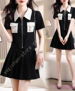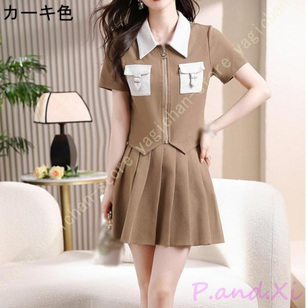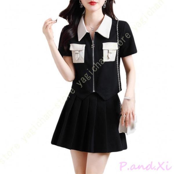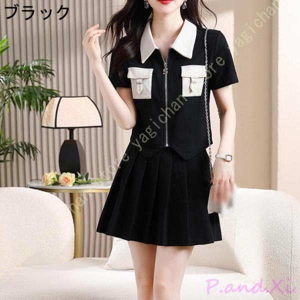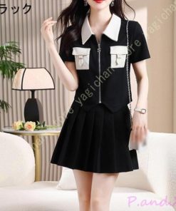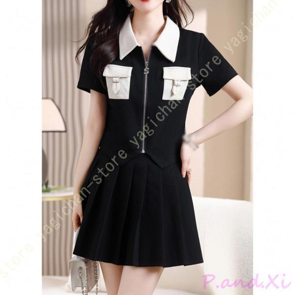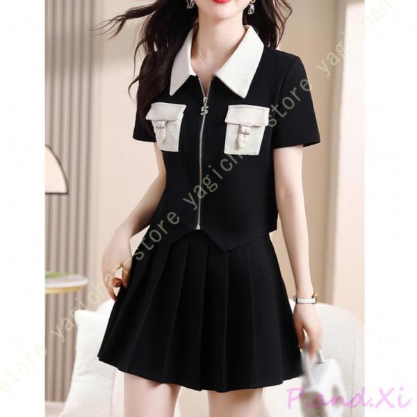スーツ フレアスカート チャイナドレス風 レディーズ 膝丈 半袖 フォーマル Vネック フリル 結婚式 チュニック 通勤 OL カジュアル パーティー フレア マキシ