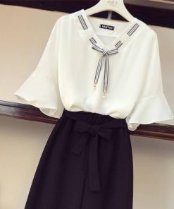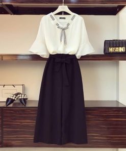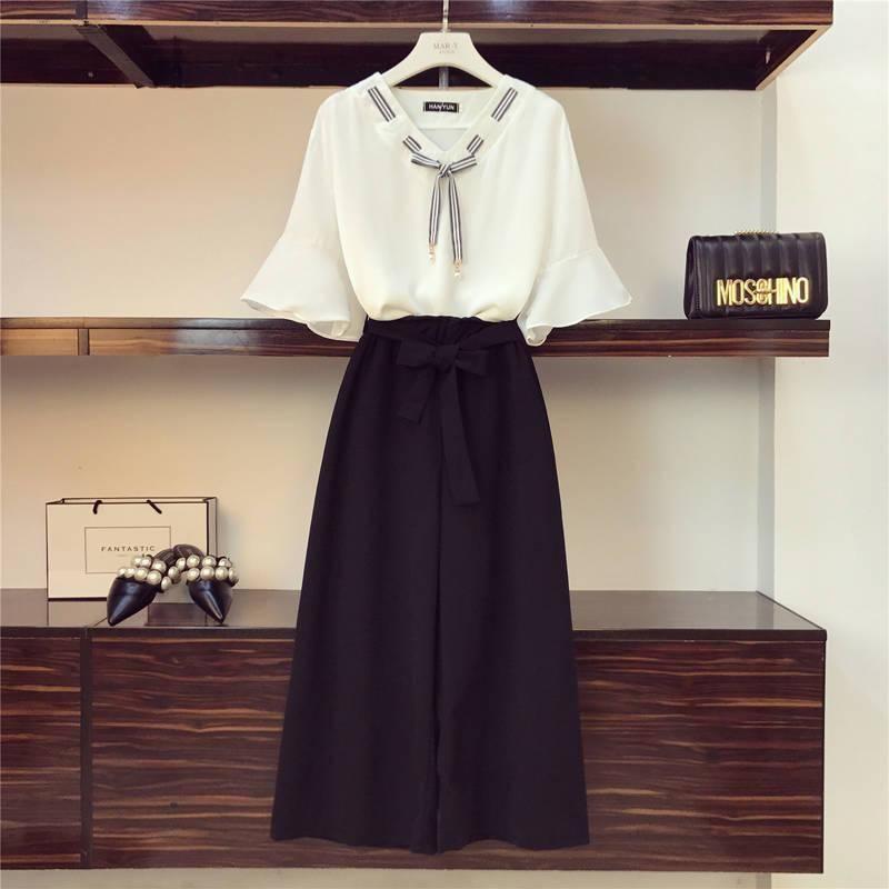 セットアップ レディース 春夏 半袖 可愛い パフスリーブ シフォン おしゃれ 前リボン ズボン ゆったり きれいめ カジュアル 新作 韓国風 2色