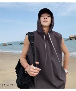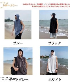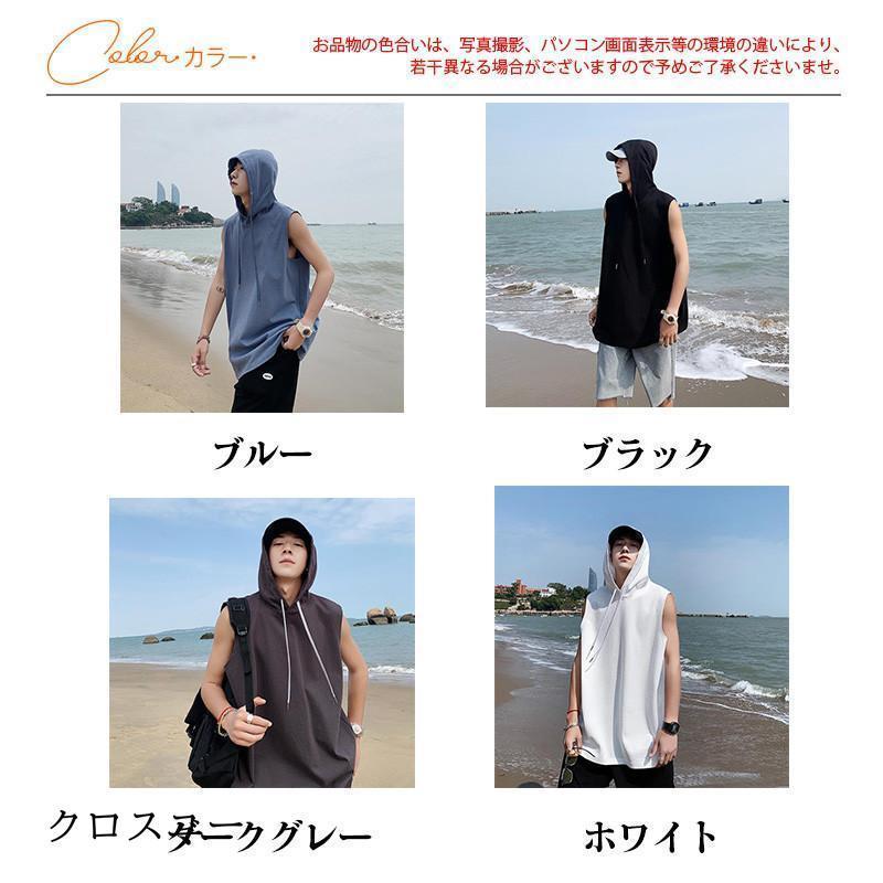 タンクトップ パーカー メンズ Tシャツ フード付き ノースリーブ カジュアル トップス 重ね着 薄手 無地 スポーツ トレーニング 春夏 おしゃれ