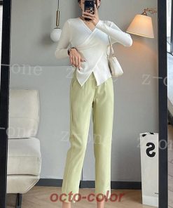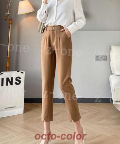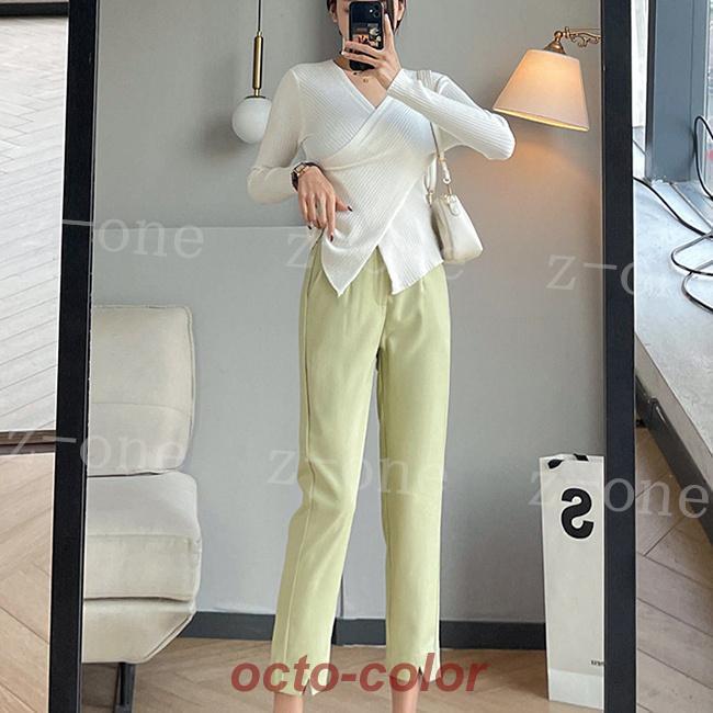 センタープレス入りのクロップド丈で美脚効果も抜群です。