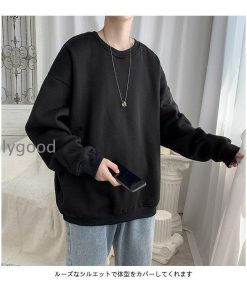 トレーナー Tシャツ メンズ 冬 春 秋 パーカー おしゃれ 厚手 ゆったり シンプル 長袖 無地 通学 カジュアル キレイめ トップス 冬新作