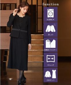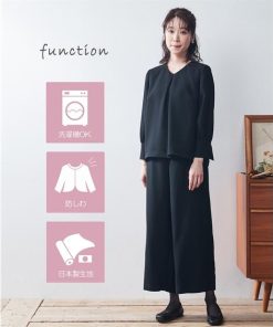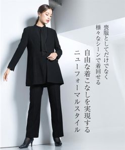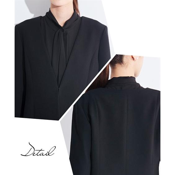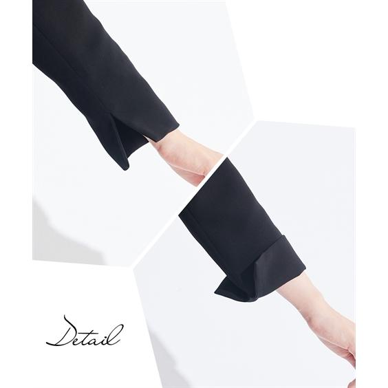 【素材】品質=[表地]ジャケット・パンツ:ポリエステル100%(二重織)ブラウス:ポリエステル100%(シフォン)【裏地】有(ジャケット:総裏 ブラウス:身頃部 パンツ:無) ジャケット:前ホック開 ポケット両脇 袖口スリット ブラウス:前ファスナー開 袖口ボタン開 パンツ:前ファスナー内ホック開 ウエスト後ゴム入 ポケット両脇 ※この商品は3点同サイズのみで販売します。
