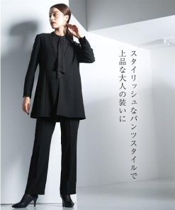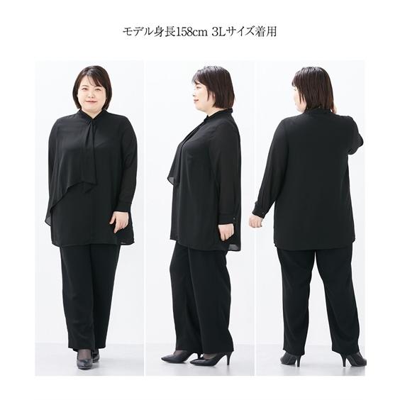 ニッセン 喪服 スーツ パンツ 大きいサイズ レディース 礼服 Callarus 日本製生地使用洗える防しわ デザイン 3点セット ロング丈 ジャケット +ドレープ ブラウス + 有
