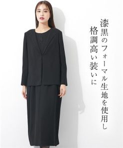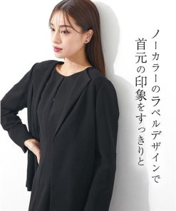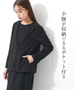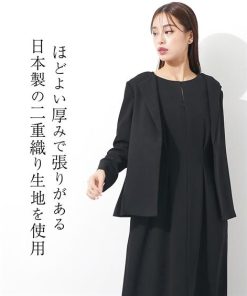 ニッセン 喪服 礼服 ジャケット 単品 レディース 日本製生地 洗える 防しわ フロントホック ノーカラー ラペル ブラックフォーマル M/L nissen