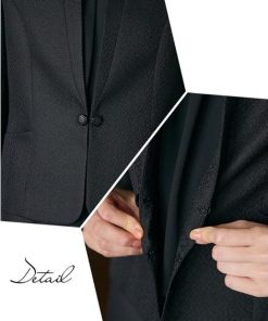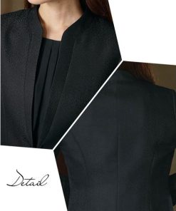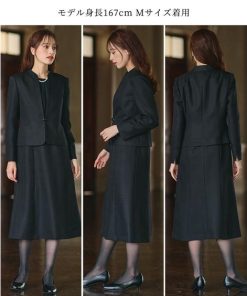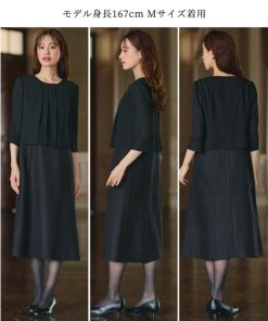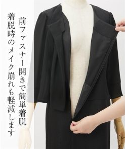 【コメント】品のある格式高い装いを大切にする方へ 礼節に沿った気品のある姿を叶えてくれる王道ブラックフォーマル こだわりポイント 表面感のある北陸ジャガード生地をした上品なワンピースアンサンブル すっきり抜け感のあるノーカラージャケット ワンピースの上身頃部分には、軽やかなジョー