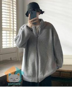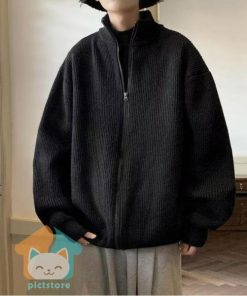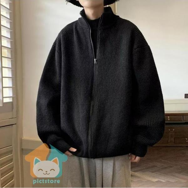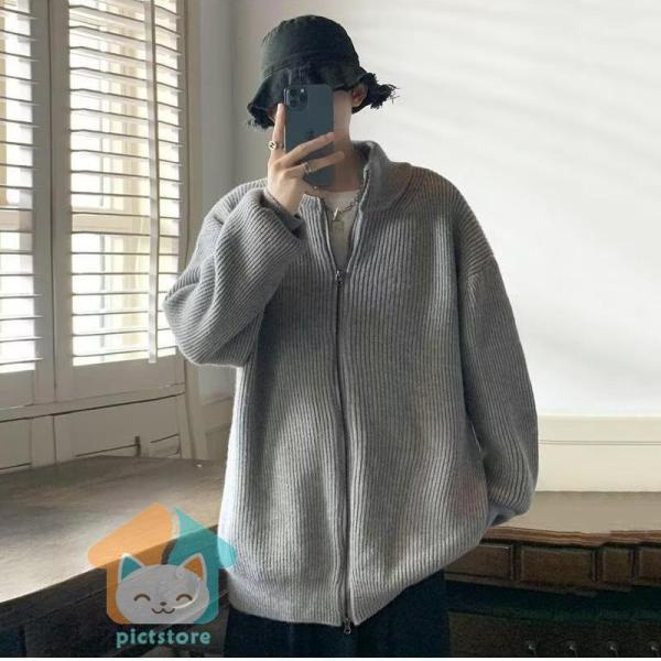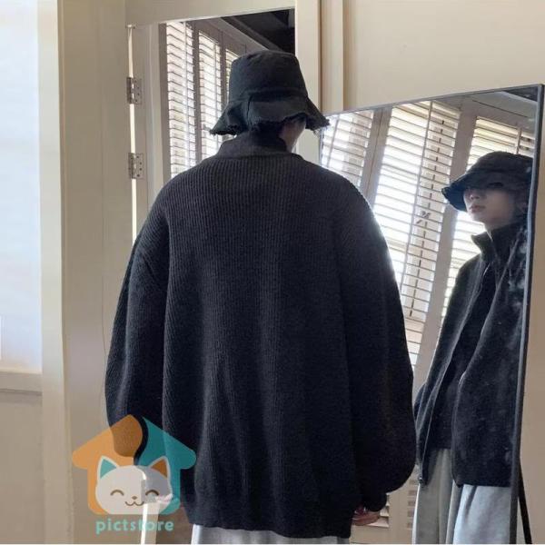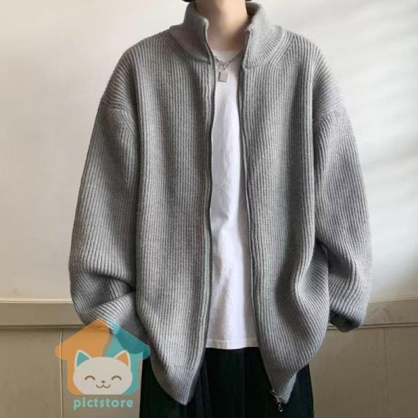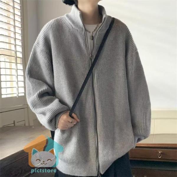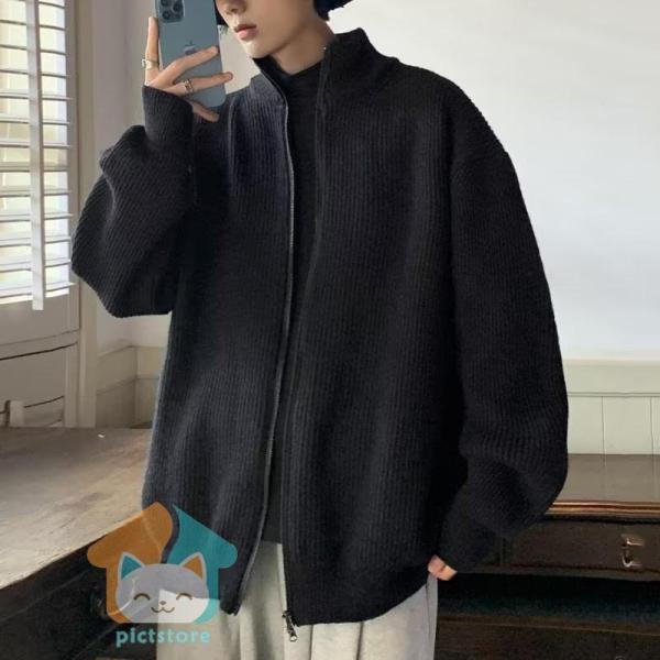 ニットカーディガン メンズ カーディガン ジャケット 長袖 秋冬 ゆったり 無地 ジップアップ 立ち襟 ニットセーター アウトドア 前開 カジュアル