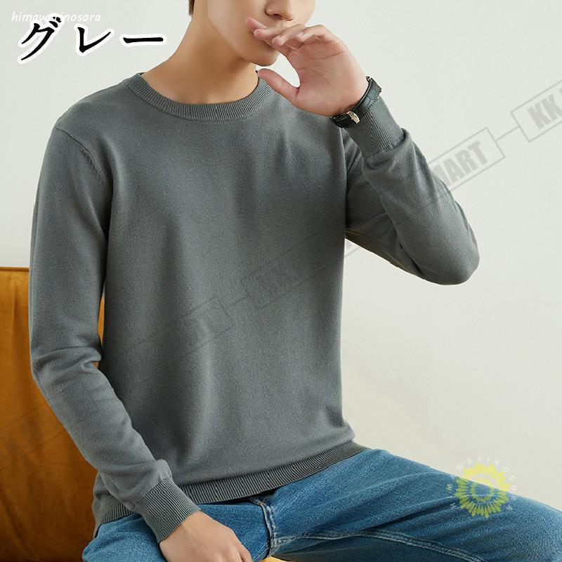 ニットセーター メンズ トップス 長袖 クルーネック セーター 丸首 トレーナー 無地 シンプル 大人 きれいめ 春 秋 冬