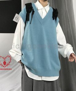 ニット メンズ 袖なし Vネック アウター ス スクール 男子 学生 ゆったり カジュアル オシャレ 通勤 通学 秋 冬