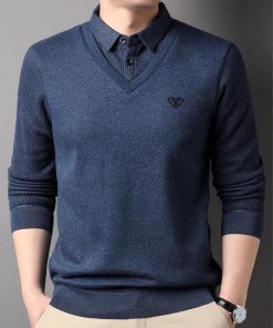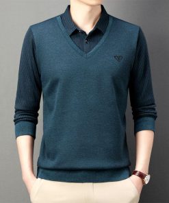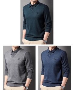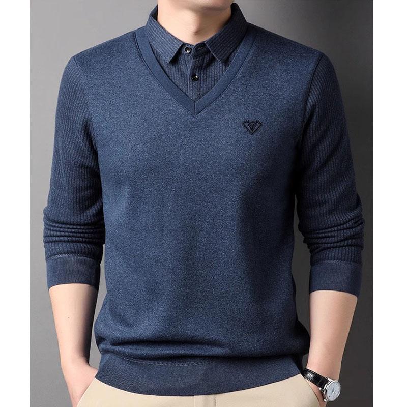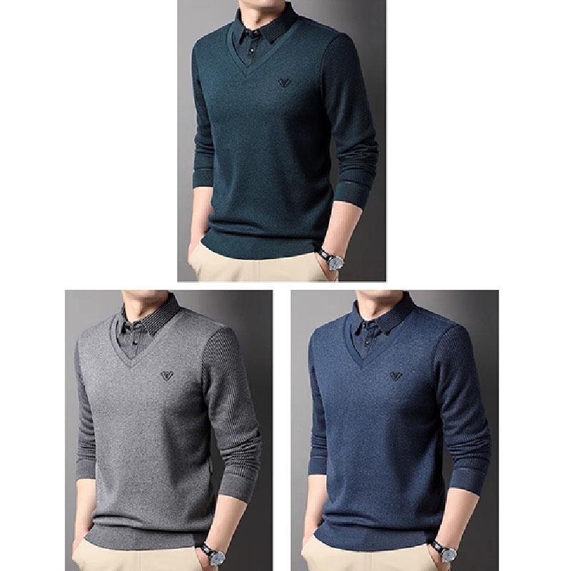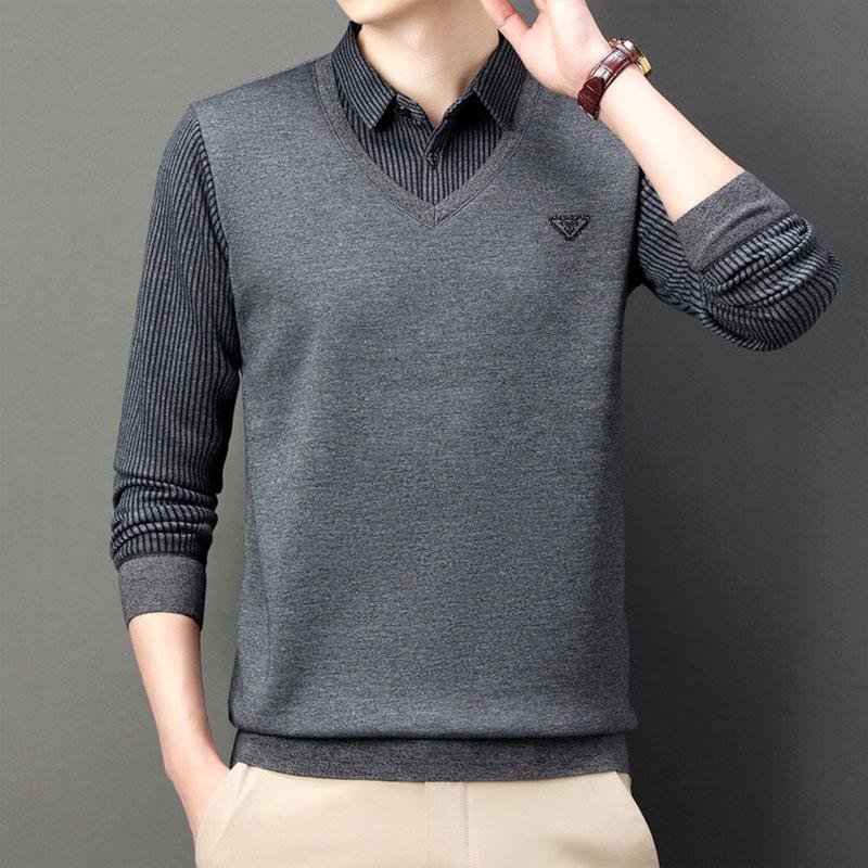 ニット メンズ 長袖 セーター 重ね着風 無地 おしゃれ シンプル 秋 秋服 秋物 秋冬 防寒 ハンサム 寒さ対策 暖かい お兄系 30代 40代 50代
