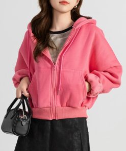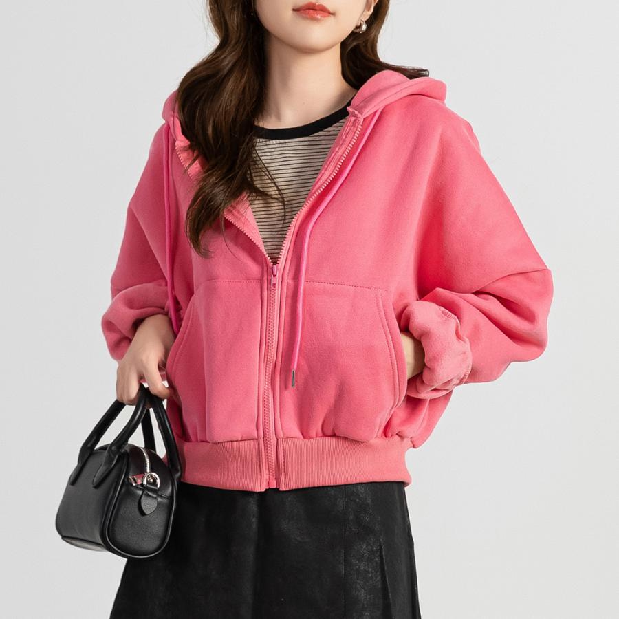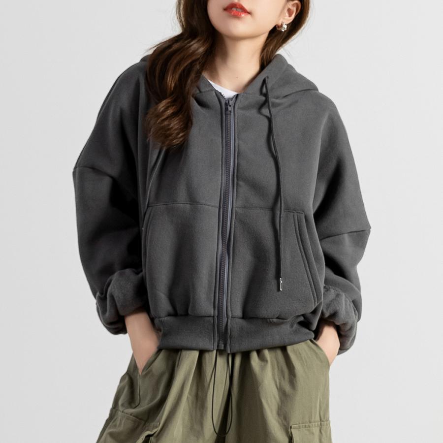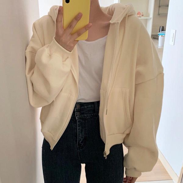 送料無料 翌日配達 あすつく パーカー フード付き レディース トップス アウター 裏起毛 フロントジップ フーディー スウェット オーバーサイズ クロップド丈 長袖 中厚手 無地 お洒落 こなれ感 暖かい ガーリー スポーティー デート 女子会 春 秋 冬