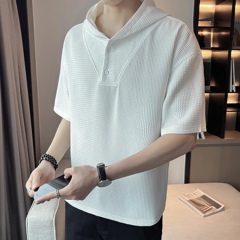 パーカー メンズ 夏用 薄手 ビッグシルエット ゆったり 半袖 Tシャツ 春夏 重ね着 レイヤード スポーツ プルオーバー 大きいサイズ フード付き