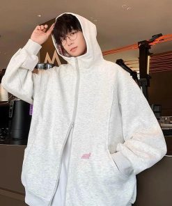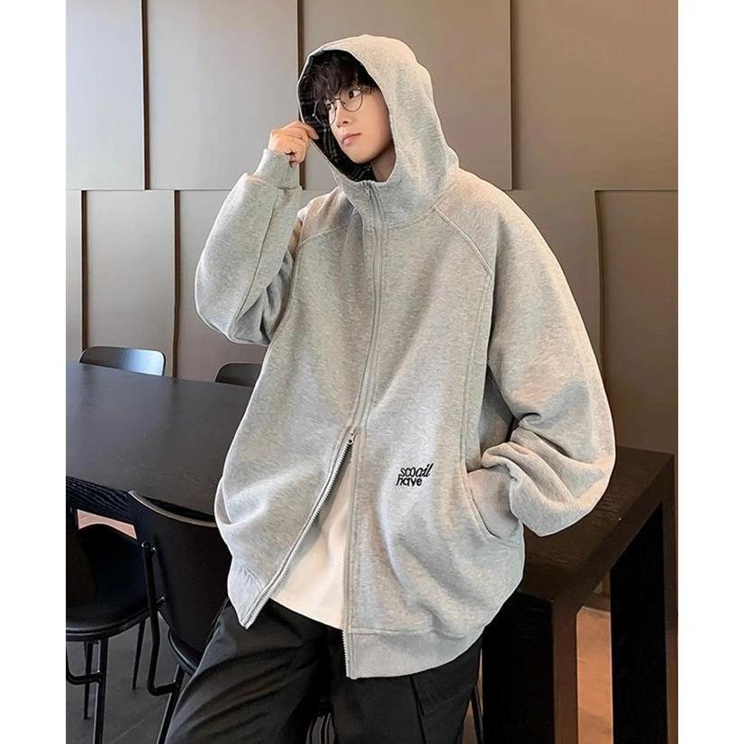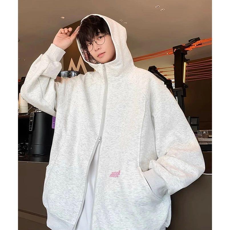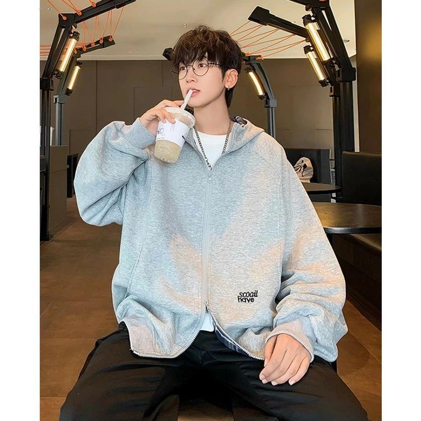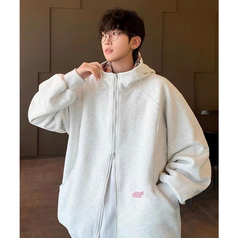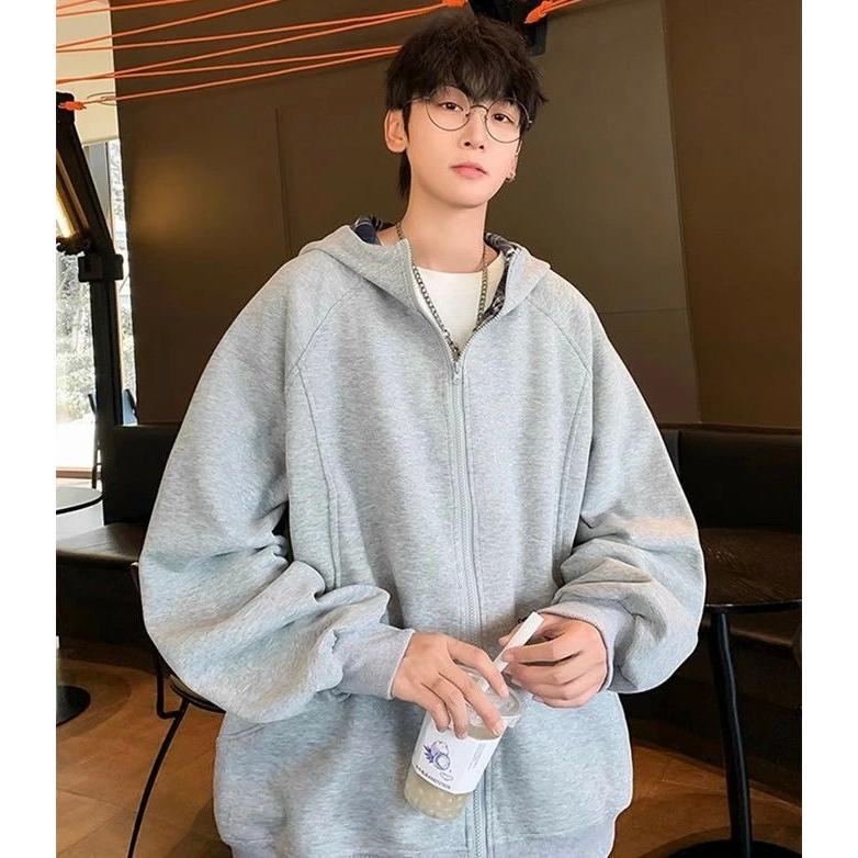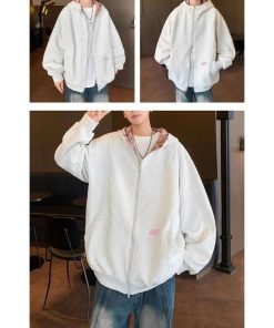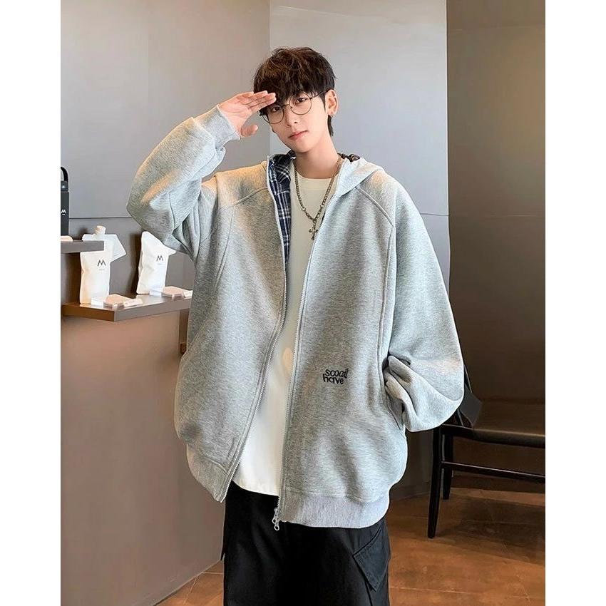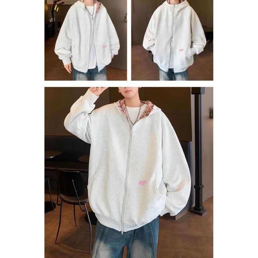 パーカー メンズ 長袖 ショート丈 ジップアップ ポケット付き ツーウェイジッパー ファスナー フード付き チェック切替 英字刺? ウエスタン ゆったり 高級感 ア
