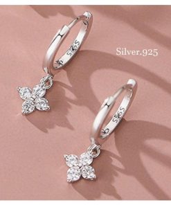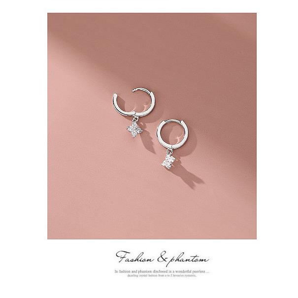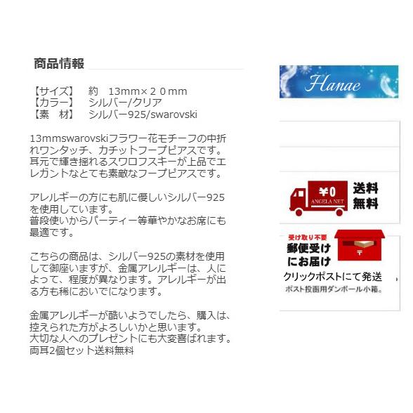 フープピアス レディース アレルギー対応 シルバー925 スワロフスキー つけっぱなし エンジェルピアス 花 フラワー 揺れる
