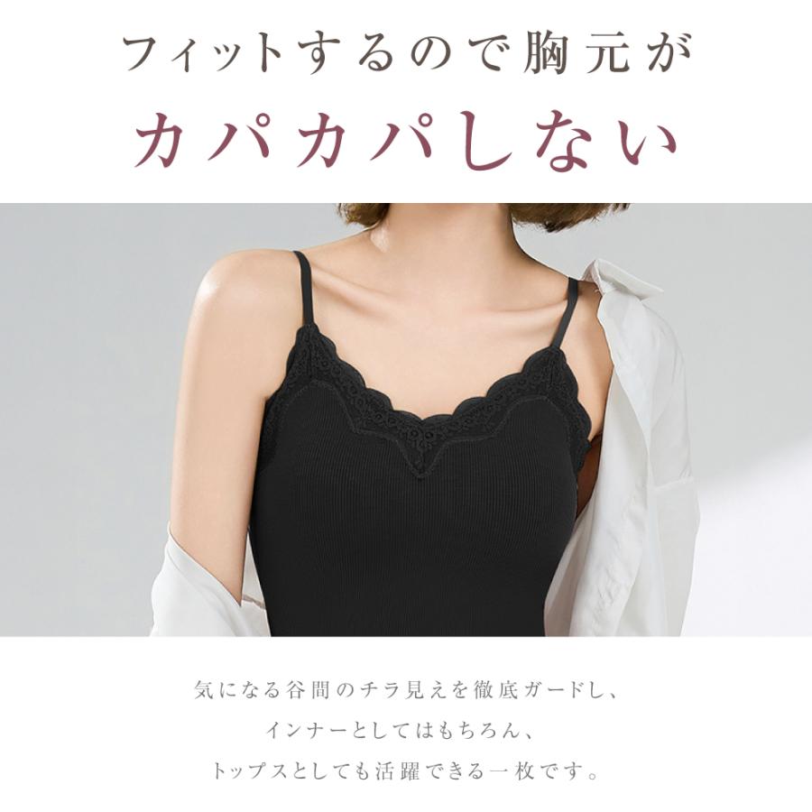 【ホールドカメ着け心地】おしゃれも、ラックも、ひとつで。気になる谷間のチラ見えを徹底ガードし、インナーとしてはもちろん、トップスとしても活躍できる一枚です。 【ソフトカップ付き】1枚でラクなのに、着回し力抜群!着け心地にもこだわった、ベーシックなカップ付きキャミ。ネックラインはレースxV型で気になる谷間をカバーしつつ、デコルテを綺麗に仕上げます。 【背中のラインがすっきり】背中が大きく開いたヘルシーなバックデザイン背中開きトップスやワンピのインナーとしても◎カジュアルにも、綺麗めにも幅広いシーンで活躍! 【さらっと快適に汗対策】汗をかいてもサラッと快適!伸縮のある紐を使用し、調節いらない 【サイズの目安】【M】バスト:75〜85cmアンダー:65〜75cmウエスト:63〜78cm【L】バスト:80〜90cmアンダー:68〜80cmウエスト:66〜81cm【XL】バスト:85〜95cmアンダー:68〜80cmウエスト:66〜81cm【2XL】バスト:90〜100cmアンダー:72〜85cmウエスト:73〜88cm【3XL】バスト:95〜110cmアンダー:72〜85cmウエスト:73〜88cm