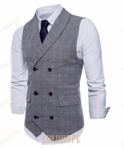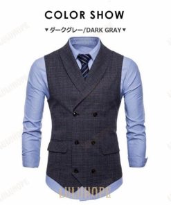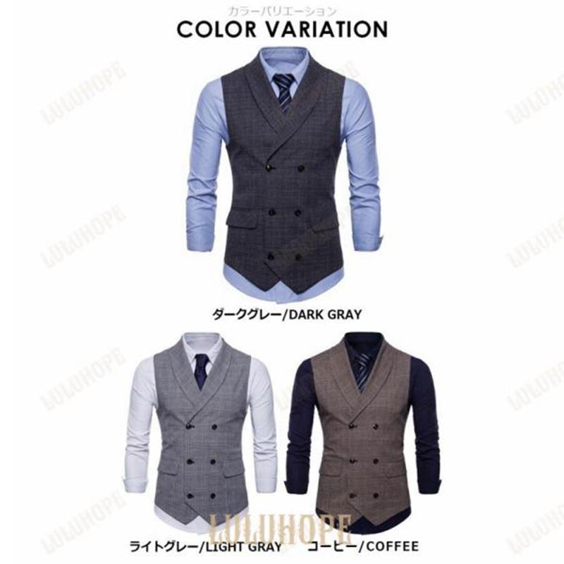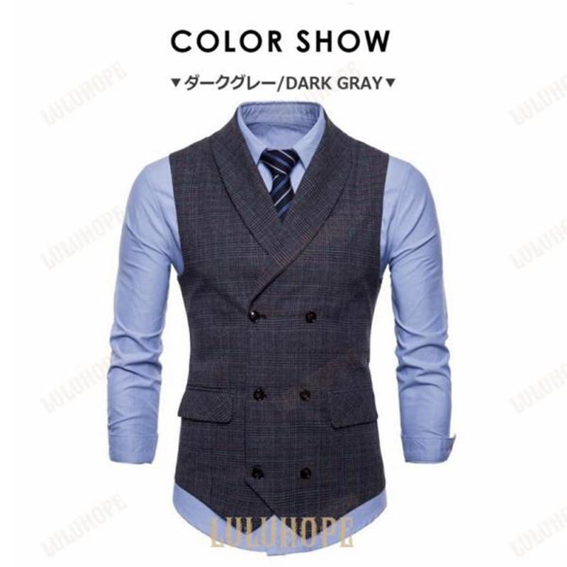 ベスト メンズ チェック ジレベスト スーツ生地 ベスト襟付き×ダブルベスト ダブルボタン ビジネス オッドベスト Vネック スリム