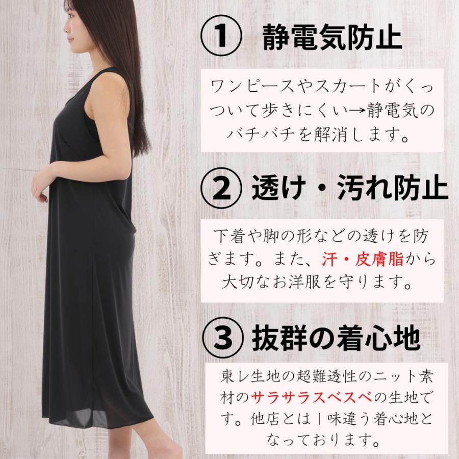 ペチコート ワンピース スリップ ロング レディース インナーワンピース 透け防止 東レ サラサラ素材 吸汗速乾 吸水 ブラ紐隠し 素玄 M L 丈90cm 100cm 110cm