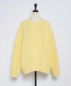 ボンジュールサガン BONJOUR SAGAN クルーネックミックスケーブルニット (YELLOW)