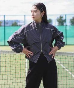 ボンジュールサガン BONJOUR SAGAN 配色パイピングナイロントラックジャケット (CHARCOAL-GRAY)