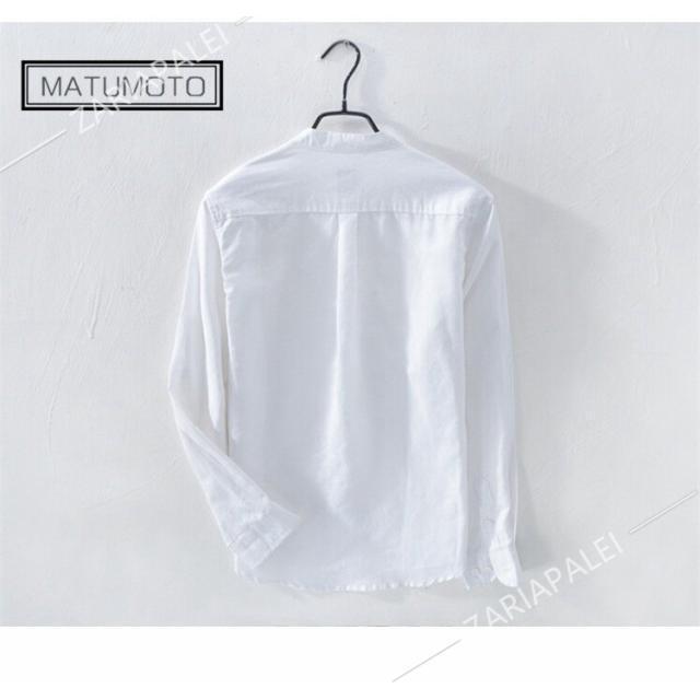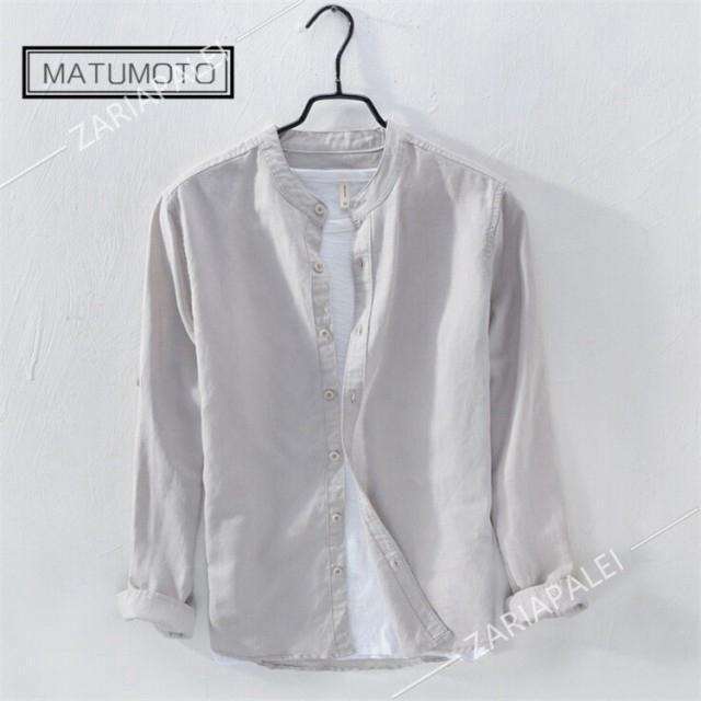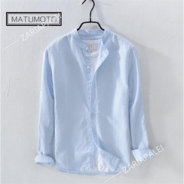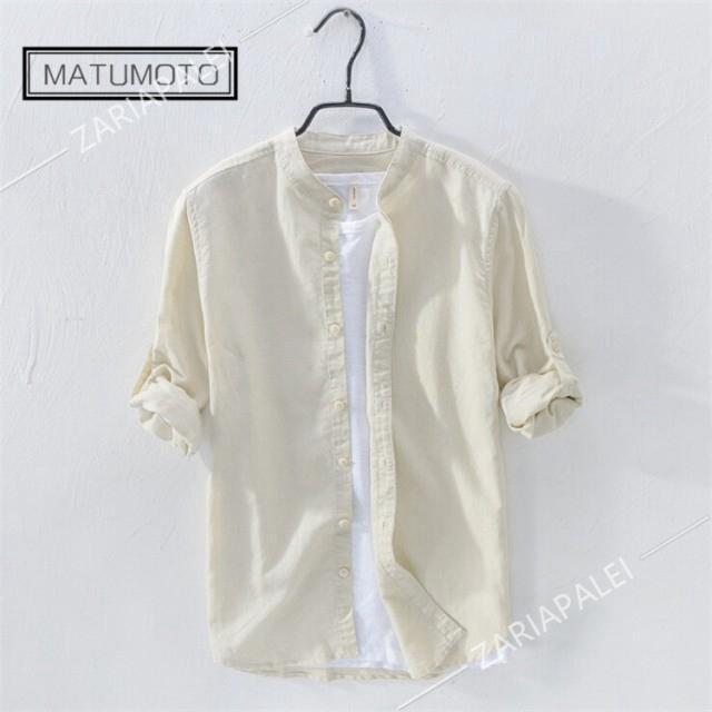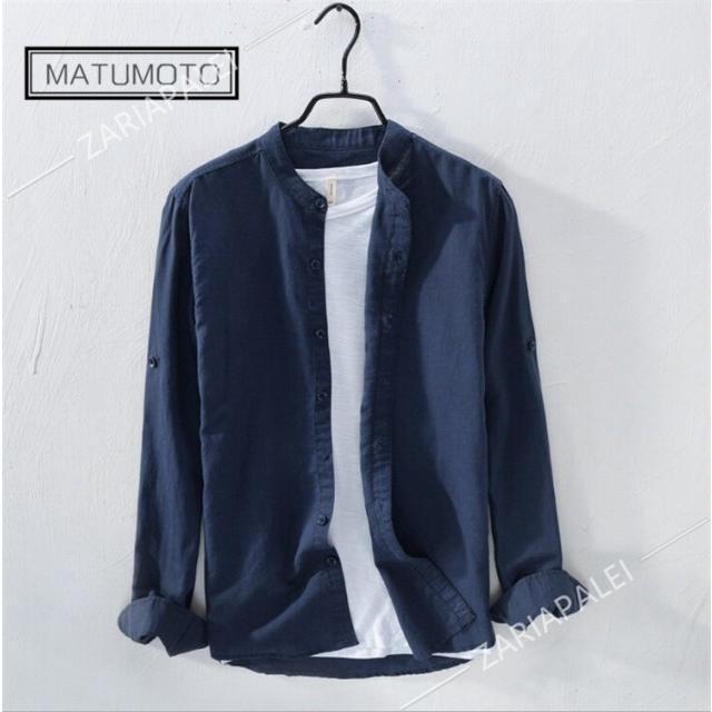 リネンシャツ メンズ 長袖 無地 麻混シャツ カジュアルシャツ 夏シャツ 通勤 開襟 綿麻シャツ 麻 カ