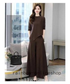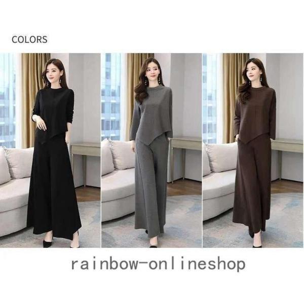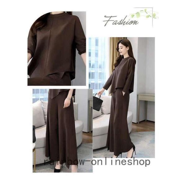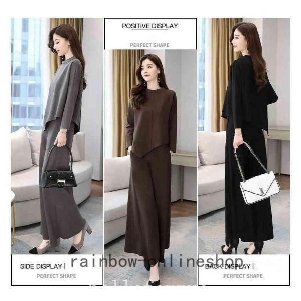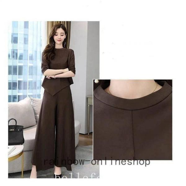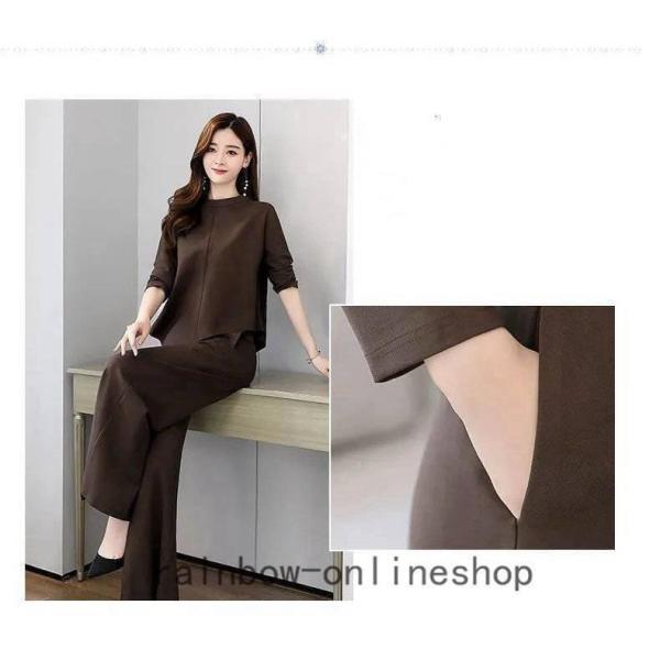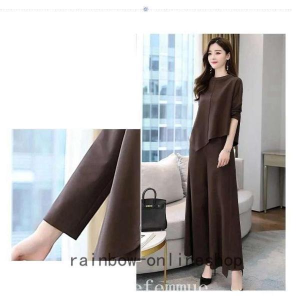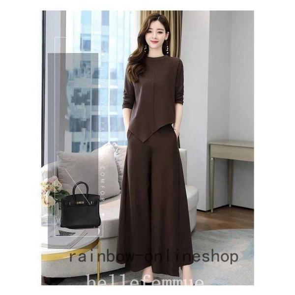 レディースセットアップスパンツ秋冬30代40代50代無地上下セットきれいめファッションゆったり通勤OLママ大きいサイズ