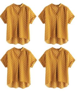 レディースTシャツ 大人 半袖 Vネック 大きいサイズ 女性トップス スリム オフィス 通勤 イエロー
