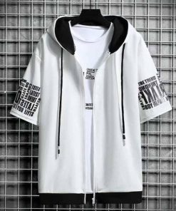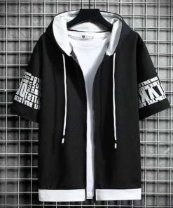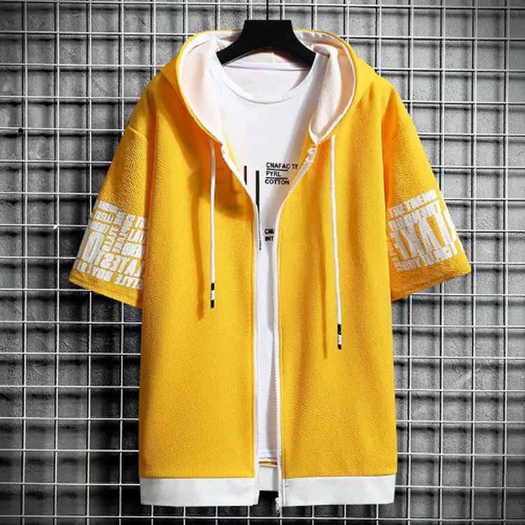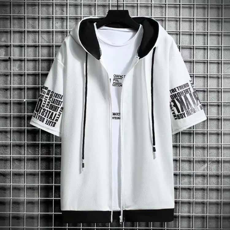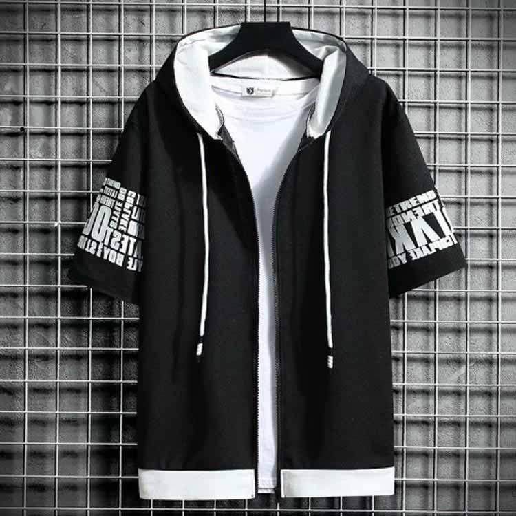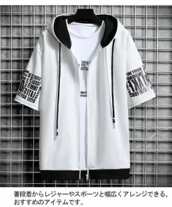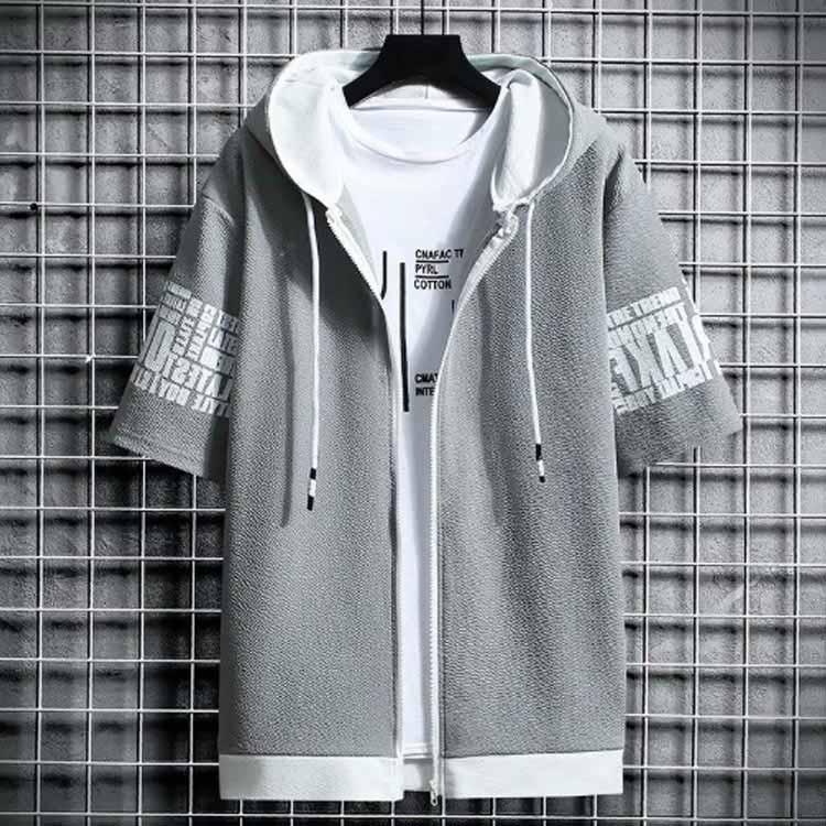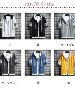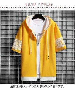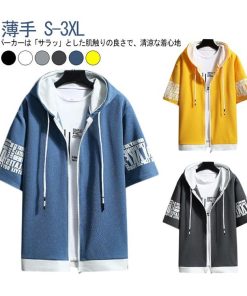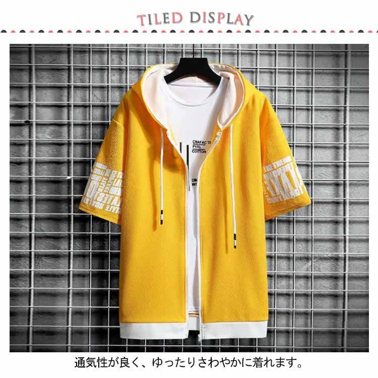 半袖 パーカー メンズ 夏服 レイヤード 無地 フード付き ゆったり ジップパーカー スウェット アウター スポーツ 大きいサイズ おしゃれ 薄手 涼