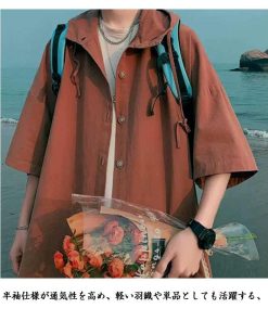 半袖 パーカー 男女兼用 前開き 無地パーカー はおり トップス 夏 サマーパーカー フード付き UVカット 薄手 半袖パーカー